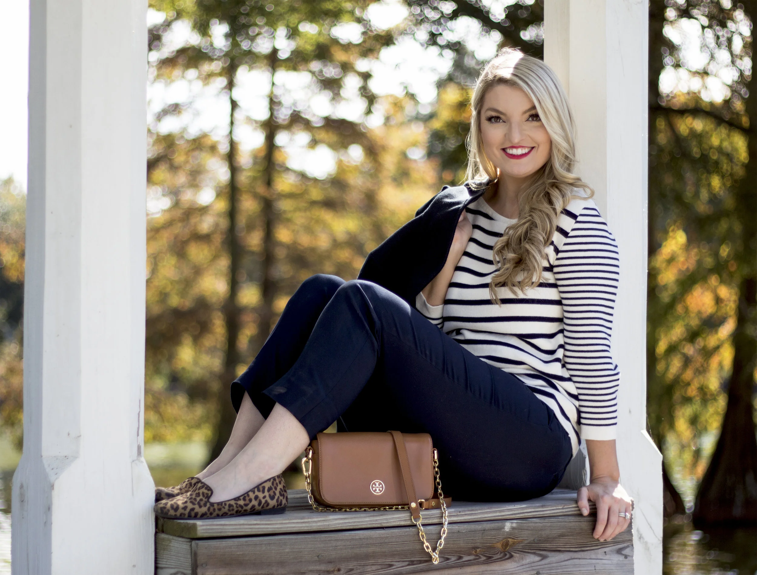 For this look I have done a little pattern mixing with stripes and leopard! My two favorite patterns to mix and match! First of all I absolutely love how crisp and clean navy blue and white stripes are!