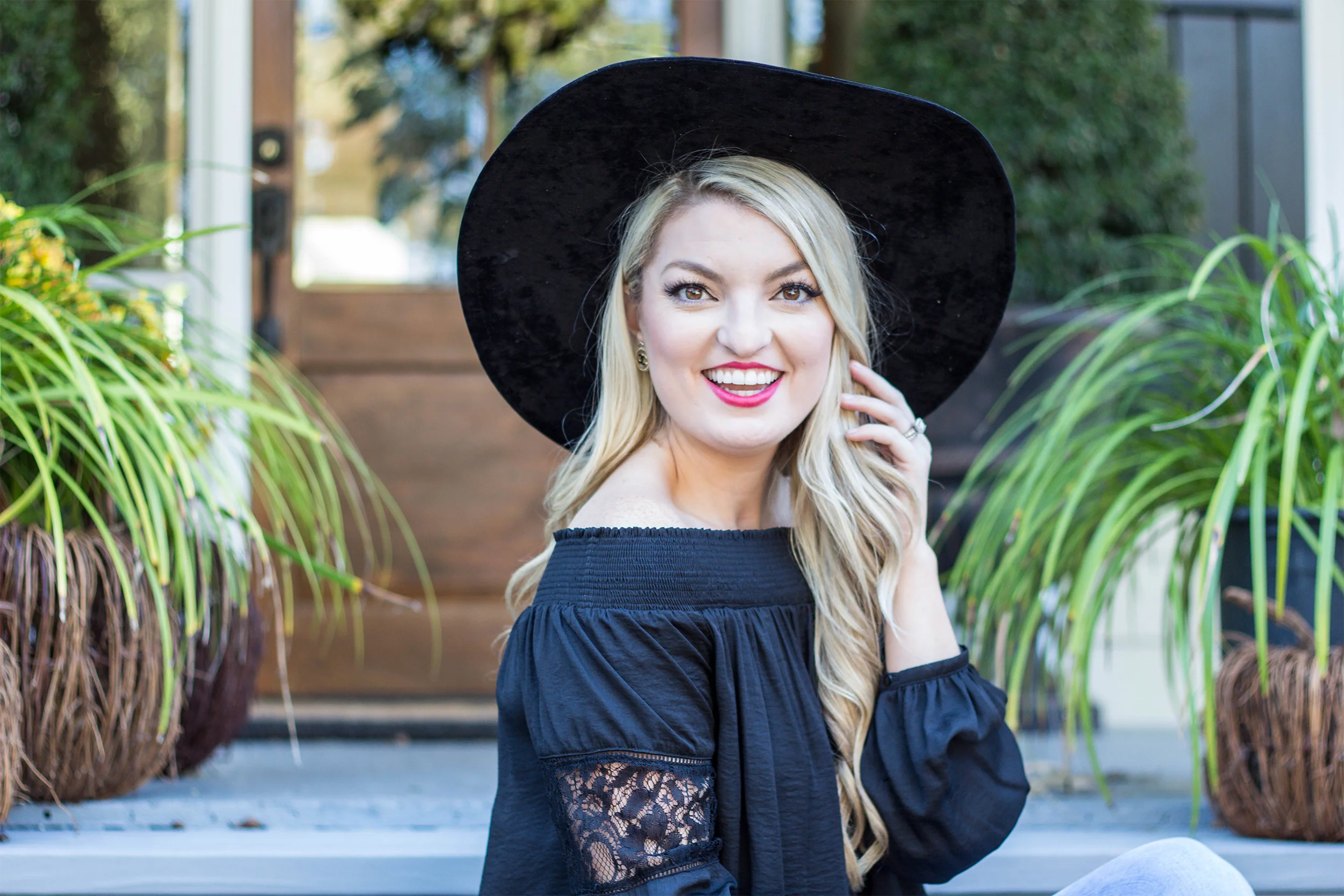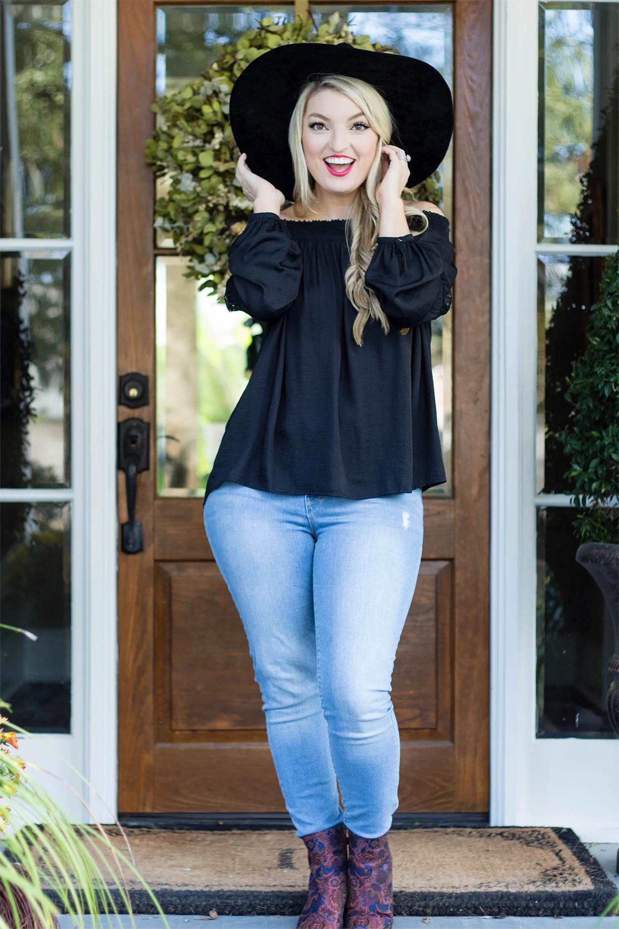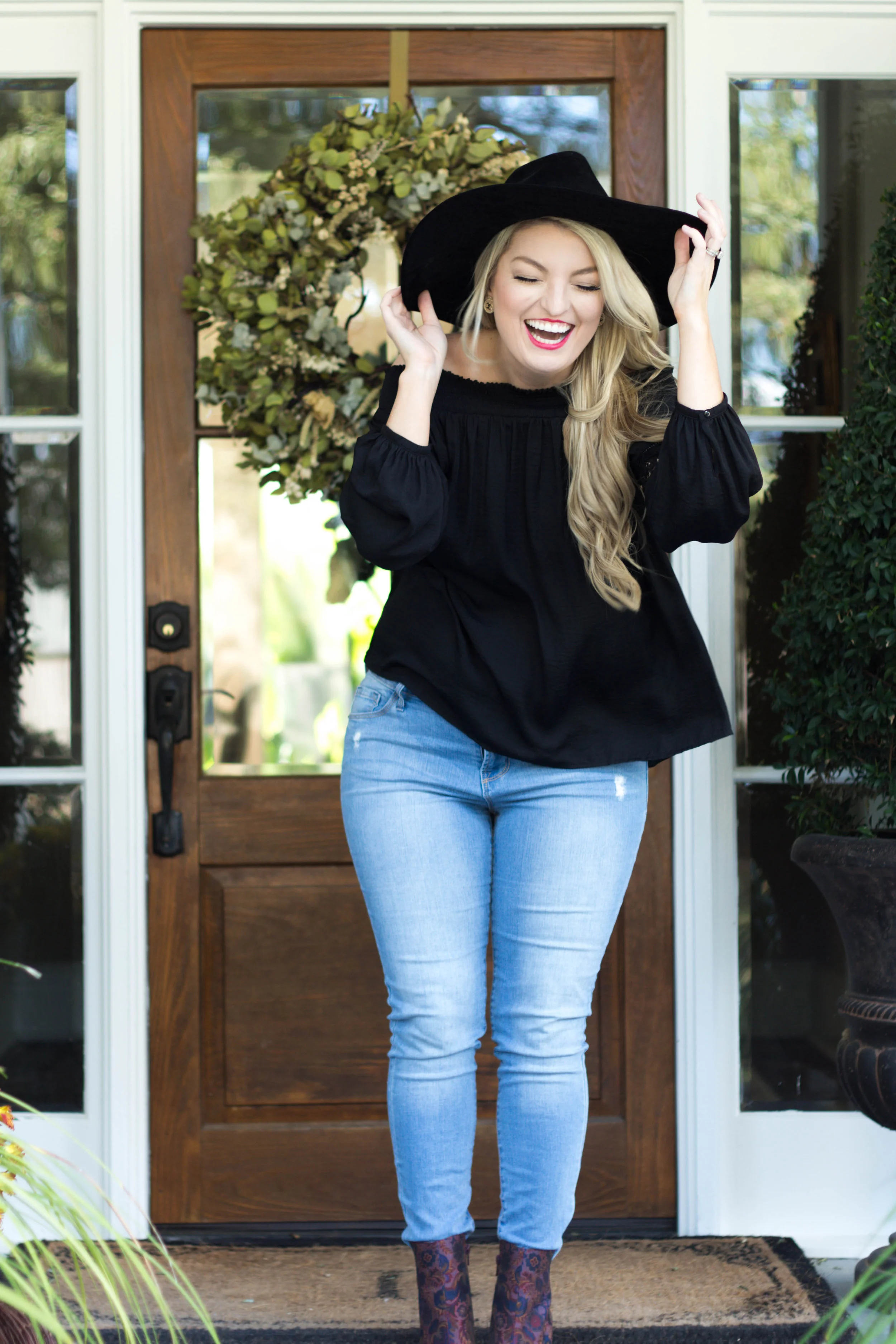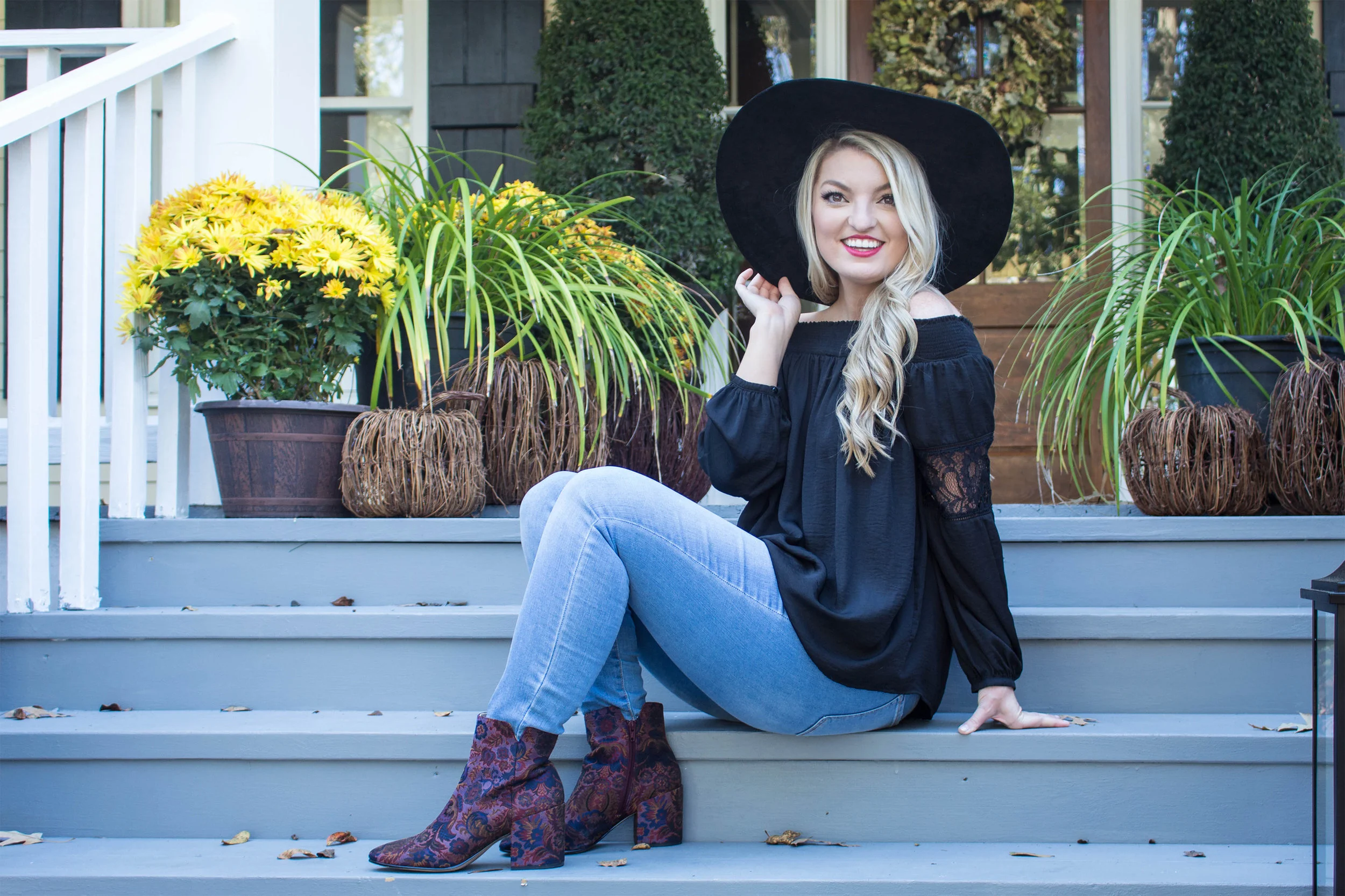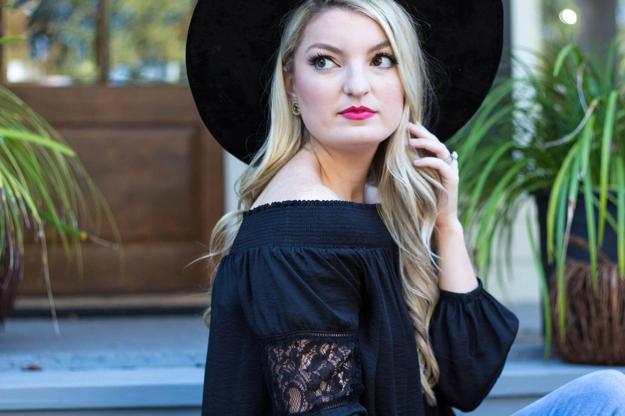 Now onto this outfit! I am head over heels in love with the off shoulder trend and I am so glad to see it it's not going anywhere for the fall! My fabulous mom gave me this beautiful off the shoulder top as a birthday gift and I adore it! It felt so French with my oversized wide brim hat! Don't you think?