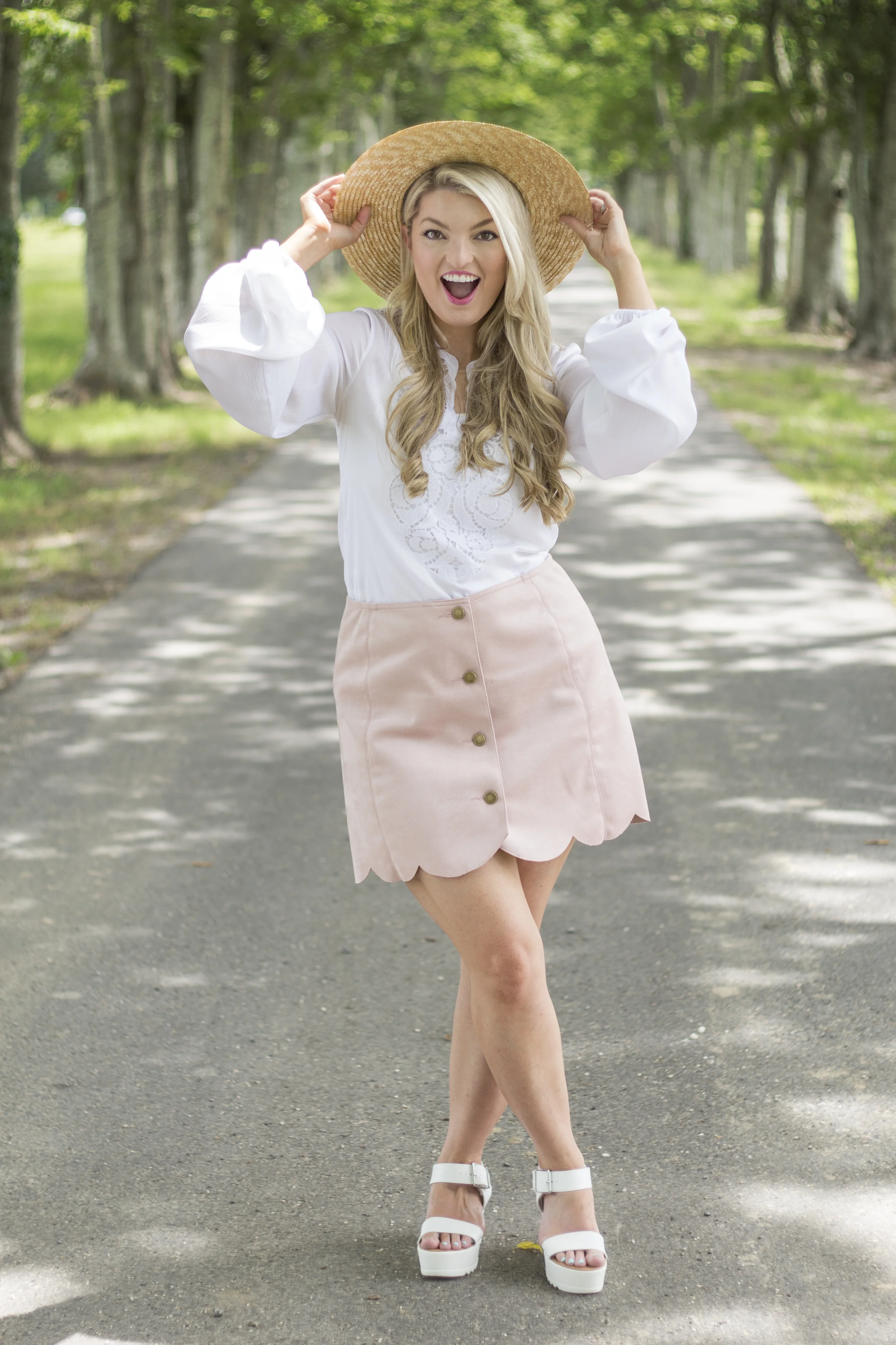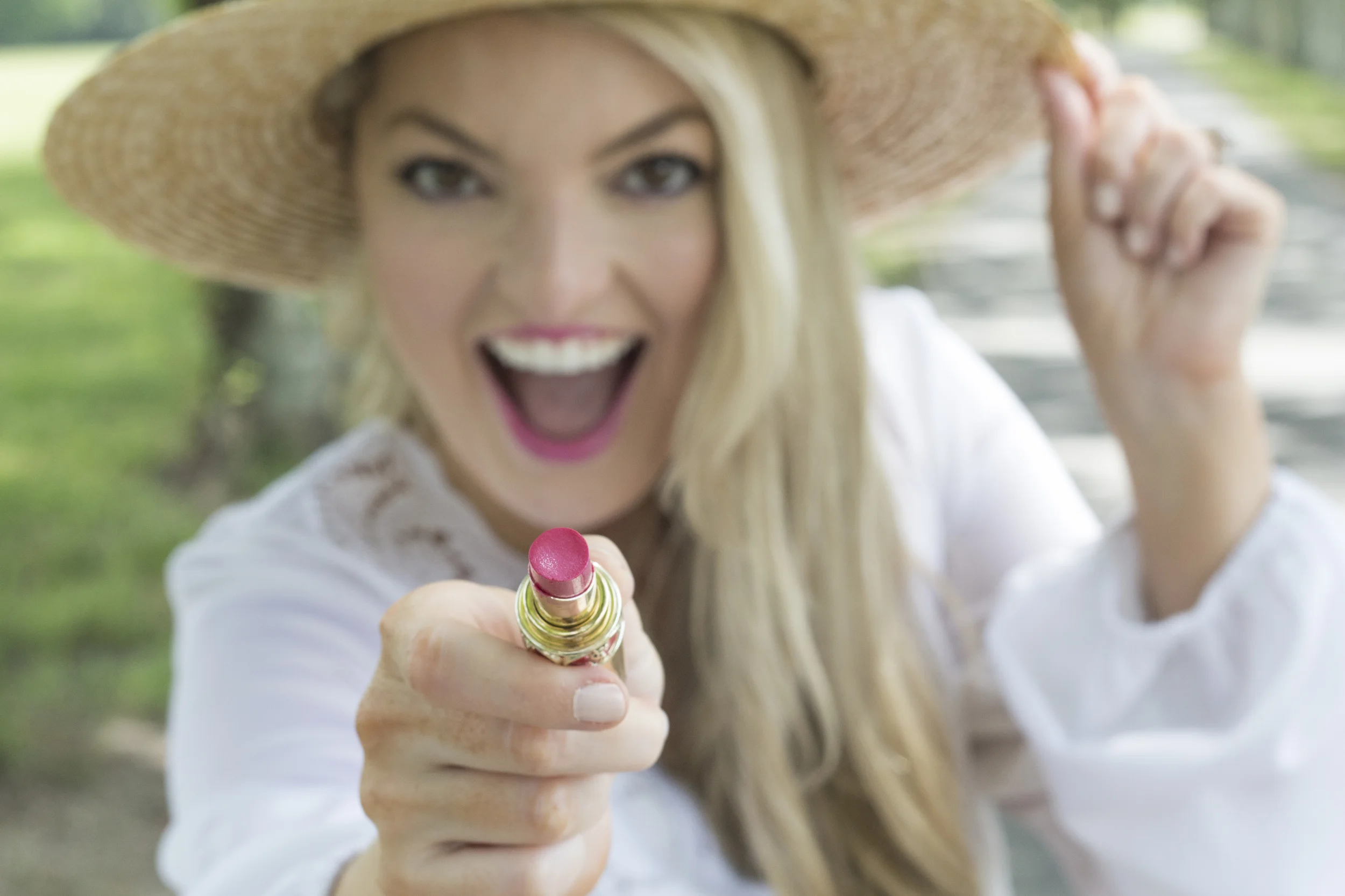 Finally to top off this ultra feminine look I added my favorite straw boater hat from American Eagle. This hat has become my go to staple this summer. It adds the perfect Parisian feel to any look. This outfit was made complete by my favorite YSL lipstick and my oversized white sunglasses!